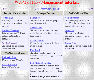 If you have already purchased WebMail and you have a WebMail key you will need to login via the managers interface and register WebMail. The screen will look something like this: