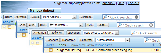 Surgeweb language translation features are similar to the language translation capabilities of the other surgemail web interfaces, but are notably different in a few areas.