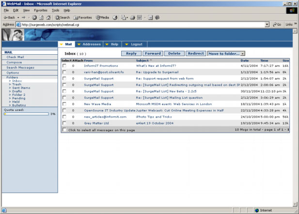 Panel, Surge and Smooth : Fully featured, latest template sets that have support for the latest multilanguage features of webmail, the latest antispam features and remain fully supported and updated. These are supplied and installed with the latest version of surgemail. It is highly recommended that one of these template sets is used or a custom template set is used based on one of these.