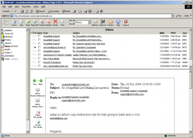 SurgeMail makes use of template to allow full customisation of the look and feel of the product. This is obviously primarily for customised WebMail webmail look and feel but can also be used with the user management and administration templates.